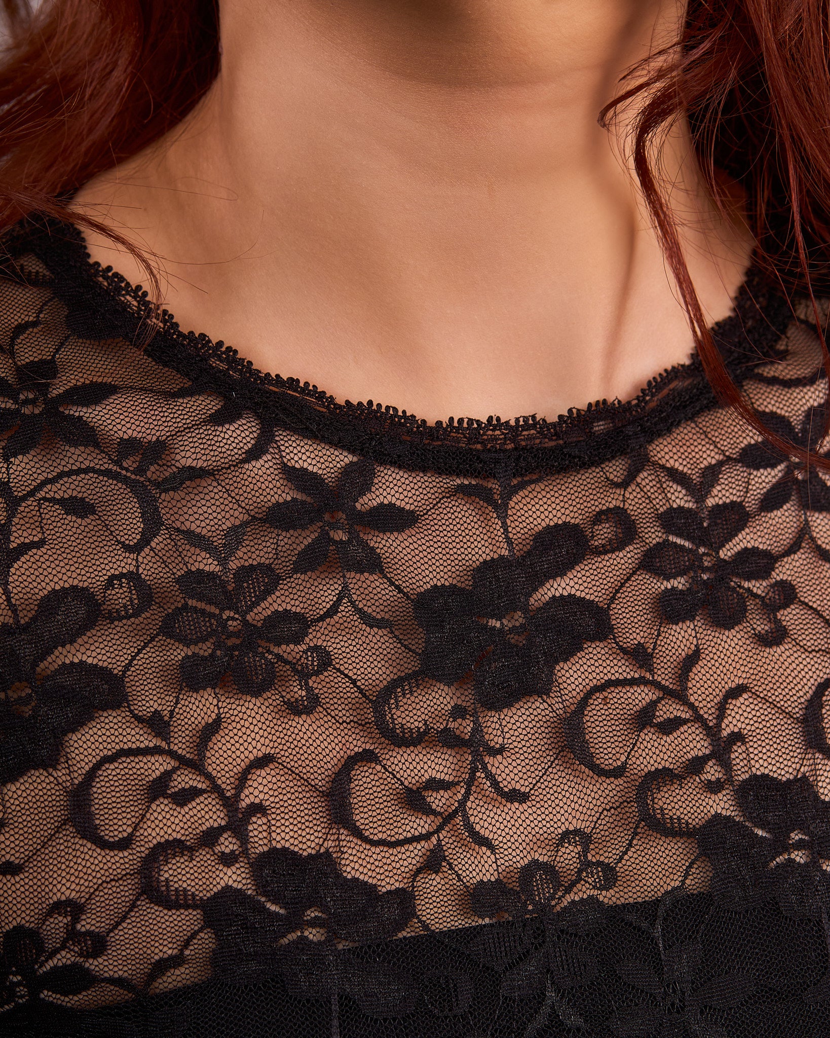 Look your best in this delicate stretch lace long sleeve top. Featuring lace neckline and sleeve trim. Perfect for pairing with jeans or a skirt.